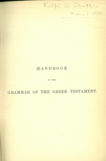 Part of: Handbook to the grammar of the greek testament (2 objects)