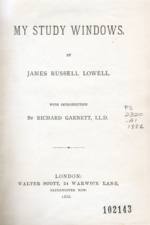 The UPEI Provenance copy of the book, My Study Windows, by James Russell Lowell, has a letter pasted inside, written by Richard Garnett. The letter reads:
